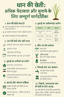 भारत के करोड़ों किसानों की पहली पसंद Dhan ki Kheti है। यह ब्लॉग आपको बताएगा कि धान की खेती कैसे करें जिससे कम लागत में अधिक मुनाफा हो। इसमें आपको मिलेंगे उन्नत बीज, खाद प्रबंधन, सिंचाई विधि, कीट नियंत्रण और सरकारी योजनाओं की पूरी जानकारी।